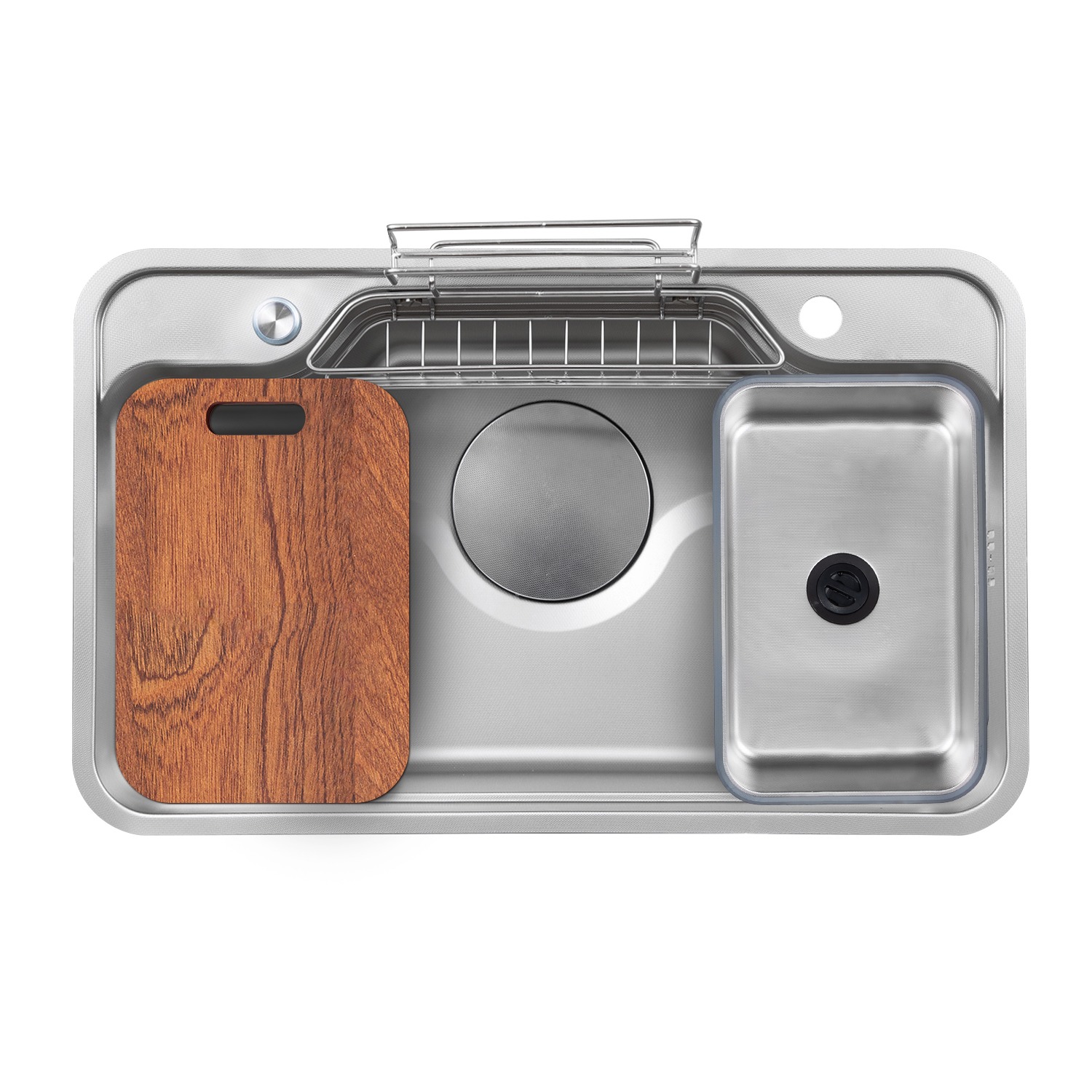 Giỏ đựng đồ inox 304 thiết kế phù hợp với kích thước và hình dạng của chậu, là một giải pháp thông minh để tận dụng không gian trong chậu và giữ cho đồ dùng như bàn chải, xà phòng và thớt gỗ được sắp xếp gọn gàng và tiện lợi.