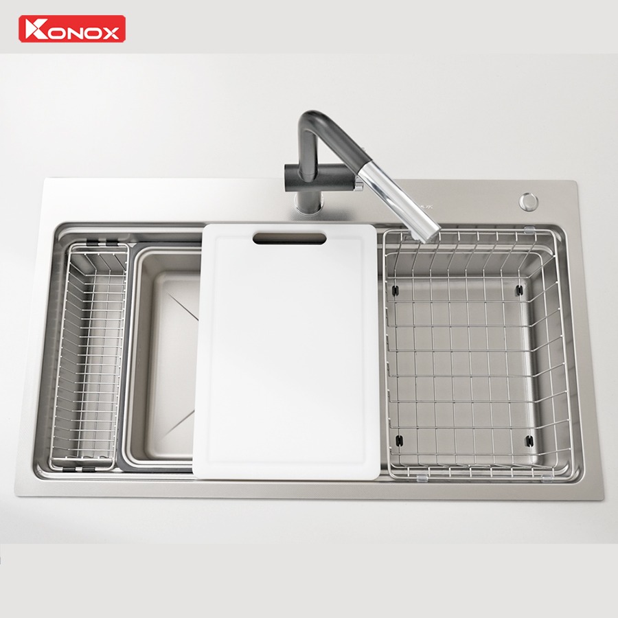 hậu rửa bát chống xước Workstation Sink KN8751TS Dekor thuộc dòng sản phẩm chống xước ưu việt nhất của Konox – Dekor Series.