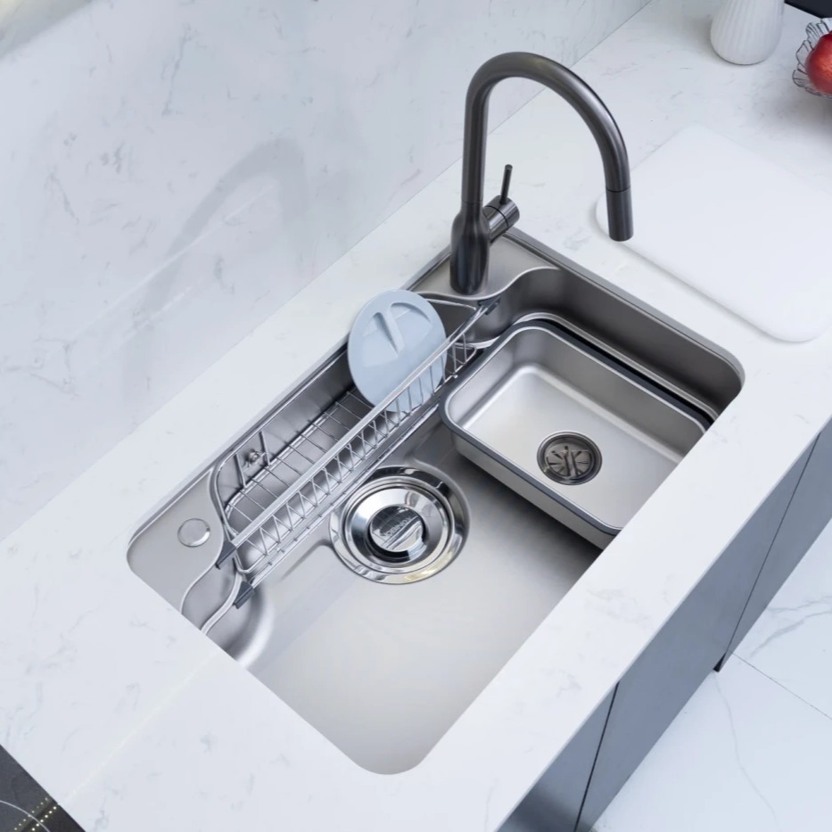 Sản phẩm đi kèm bộ phụ kiện đồng bộ tiện ích như thớt nhựa kháng khuẩn, rổ linh kiện và khay linh kiện, giúp biến khu vực chậu rửa thành nơi sơ chế thực phẩm đa năng.