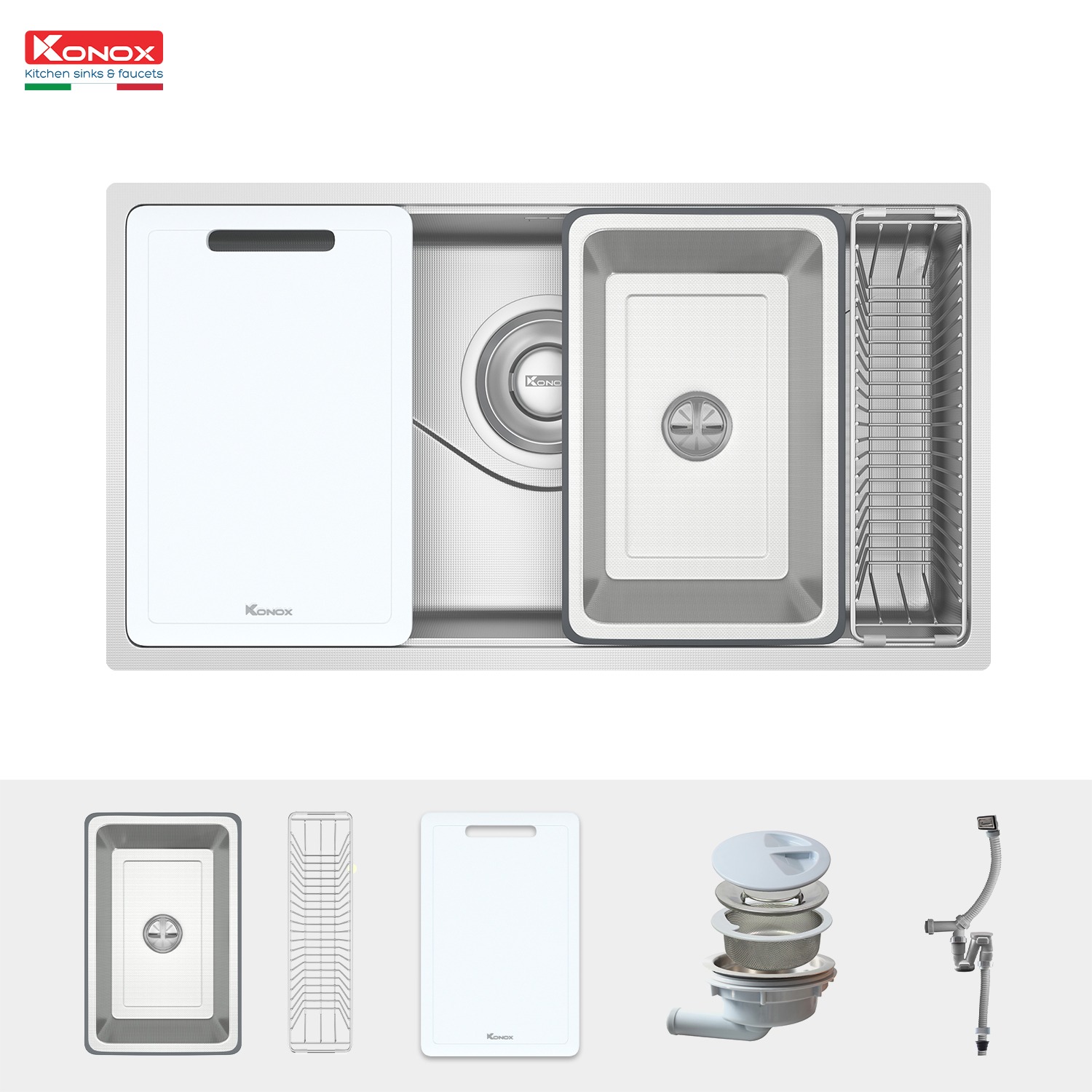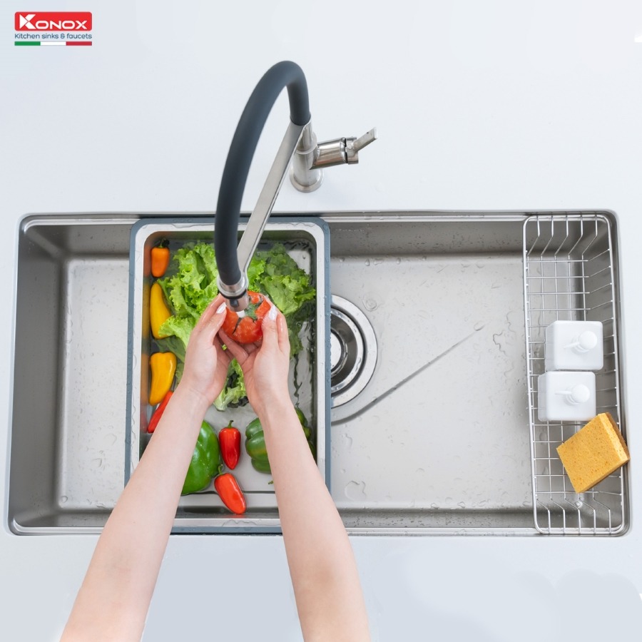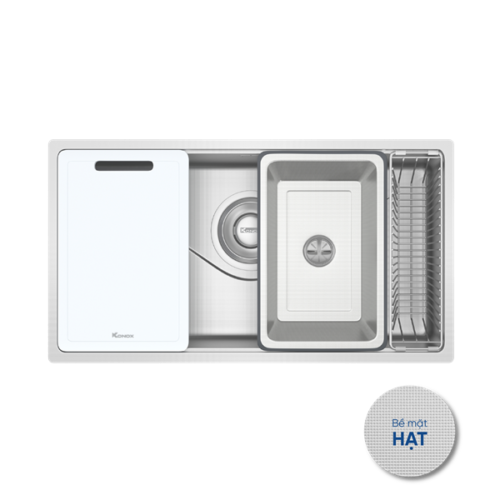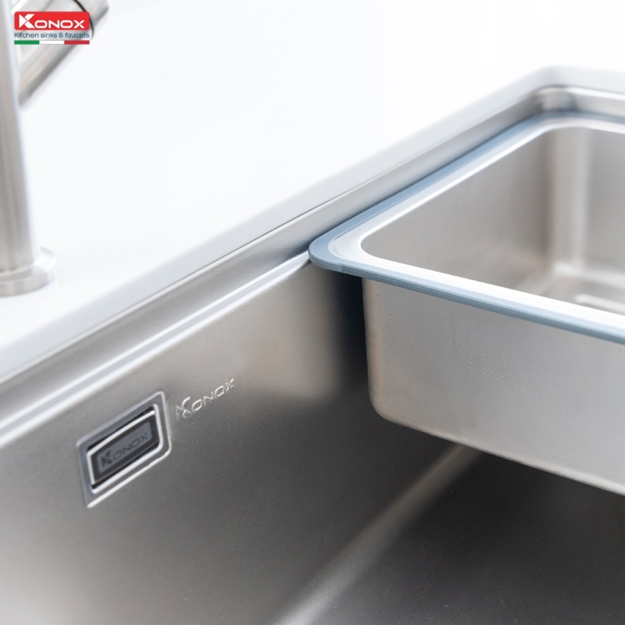 Với model Tari 8748SR, Konox ra mắt bề mặt dập tạo hạt Linen chống xước với phiên bản hạt siêu nhỏ giúp tối ưu khả năng chống xước vượt bậc, giữ vững độ bền và thẩm mỹ theo thời gian. Sản phẩm tích hợp bộ phụ kiện tiện lợi, dễ sử dụng, đáp ứng nhu cầu sử dụng bồn rửa cơ bản.