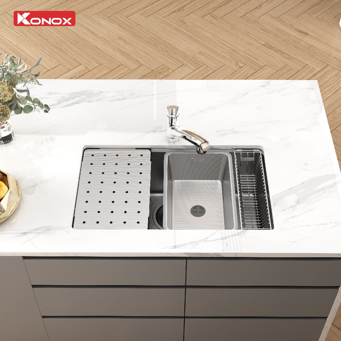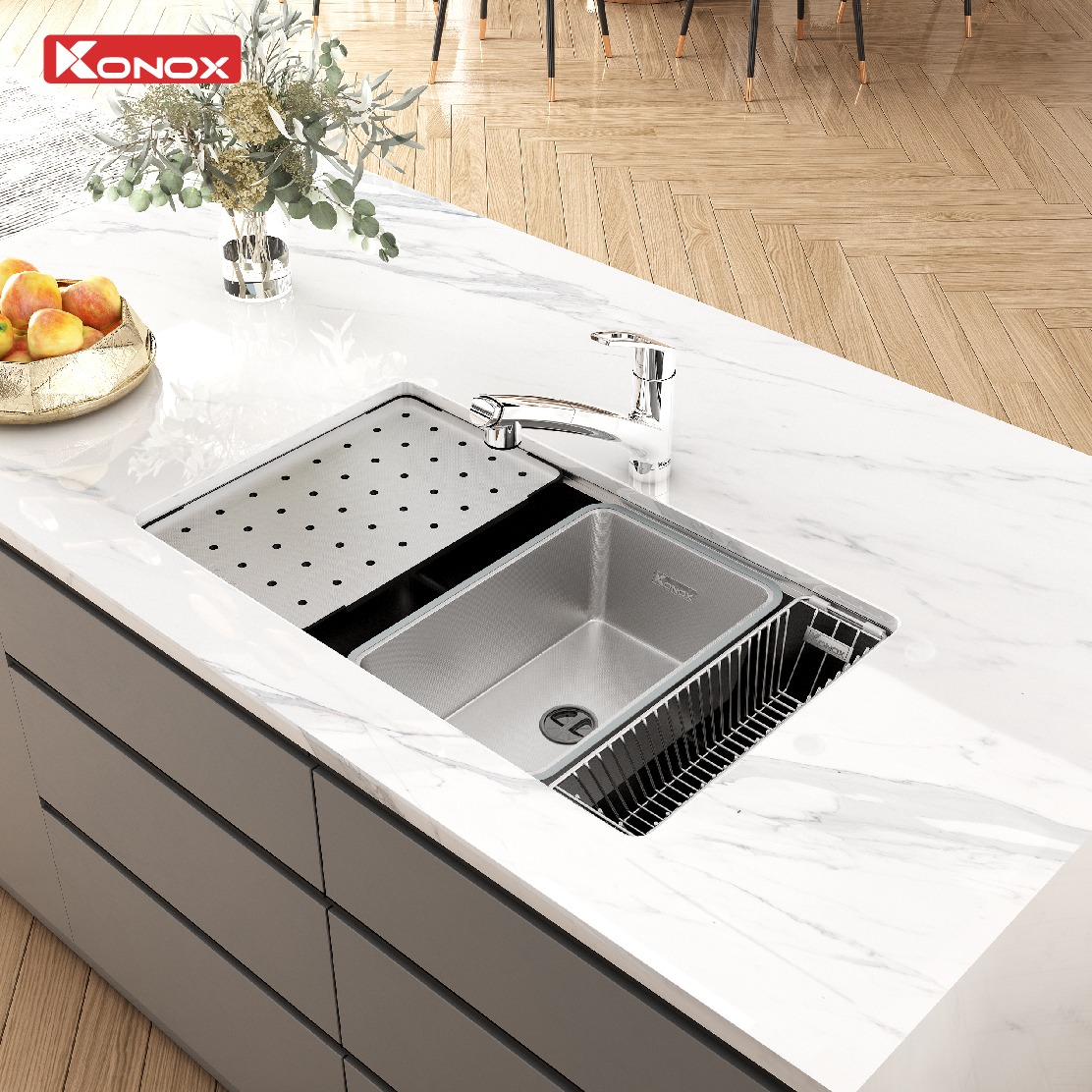 Chậu rửa bát inox 1 hố chống xước Workstation Sink Dekor 8044SU là phiên bản mới nhất của bộ sưu tập chậu rửa bát chống xước ưu việt nhất của Konox – Dekor Series.