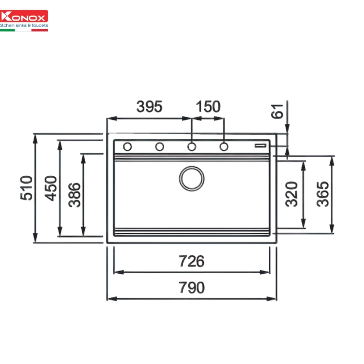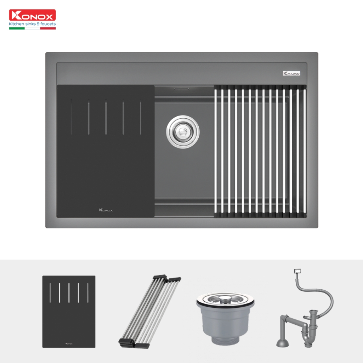 Chậu rửa bát đá Granite Sink Terra 790S Grey nằm trong bộ sưu tập chậu vòi đá cao cấp của Konox – Kiệt tác Ý trong lòng bếp Việt.