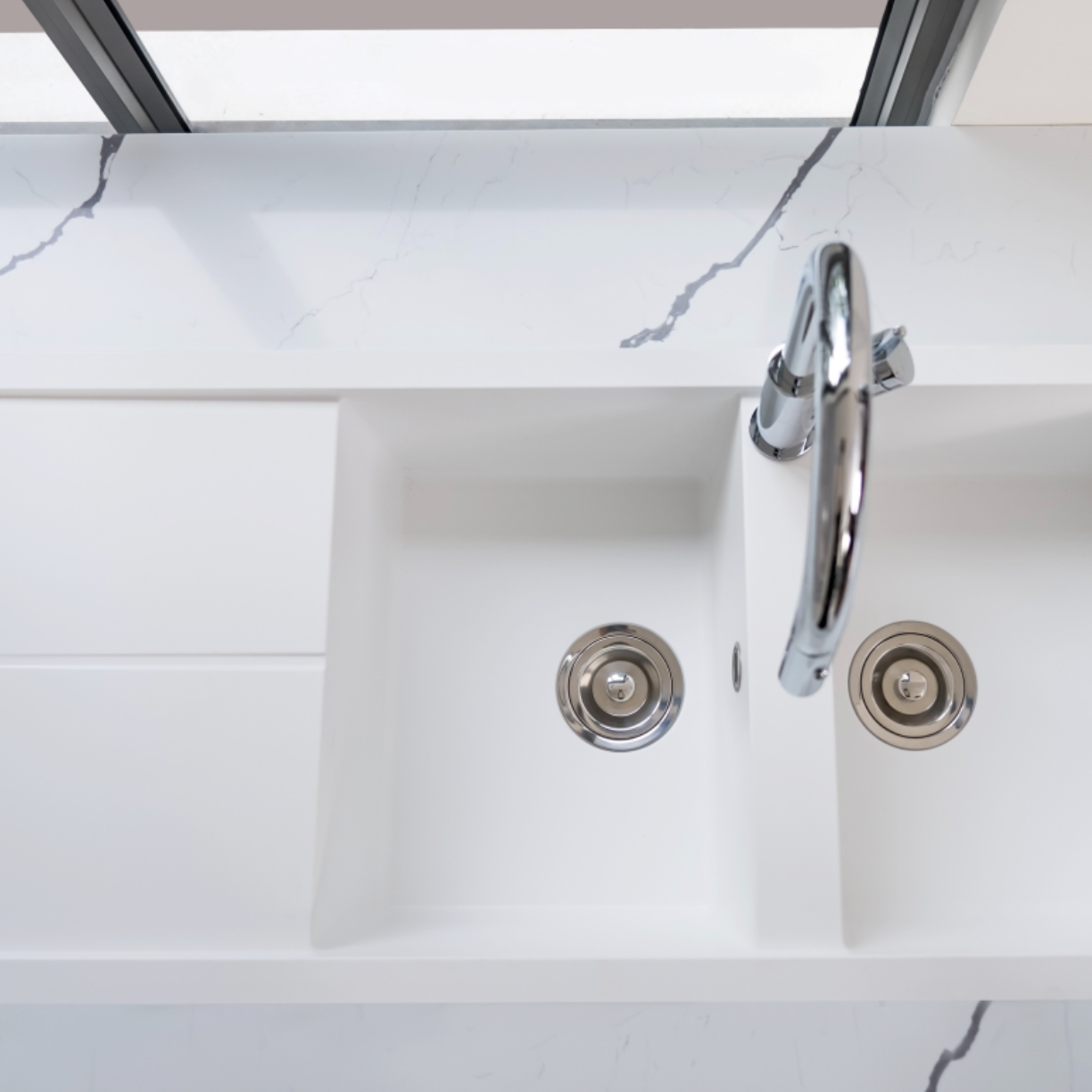 Chậu rửa bát Granite Sink Livello Smart 1160 – White Silver nằm trong bộ sưu tập chậu vòi đá cao cấp của Konox – Kiệt tác Ý trong lòng bếp Việt