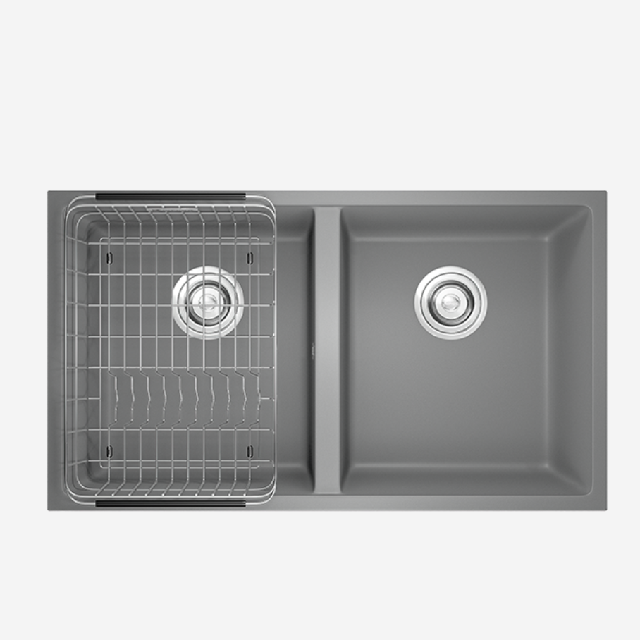 Bộ sưu tập chậu đá Veloci 760D với thiết kế chuyên biệt cho phong cách lắp đặt âm mặt đá theo xu hướng. Hai hố chậu dung tích đủ lớn cho phép bạn thỏa thích dọn rửa, nấu nướng.