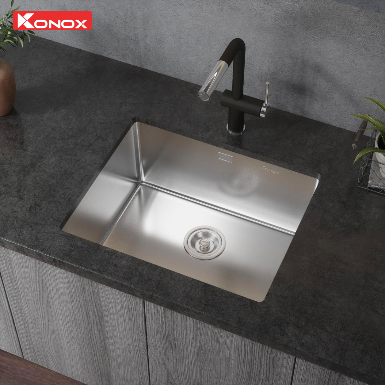 Với model Tari 500SM, Konox ra mắt công nghệ xử lý bề mặt trơn mịn sở hữu độ bền, khả năng chống ăn mòn lý tưởng, an toàn với sức khỏe và 100% có thể tái chế, giữ vững độ bền và thẩm mỹ theo thời gian. Tari 500SM với thiết kế vuông góc tinh tế sắc bén tạo điểm nhấn cho không gian bếp.