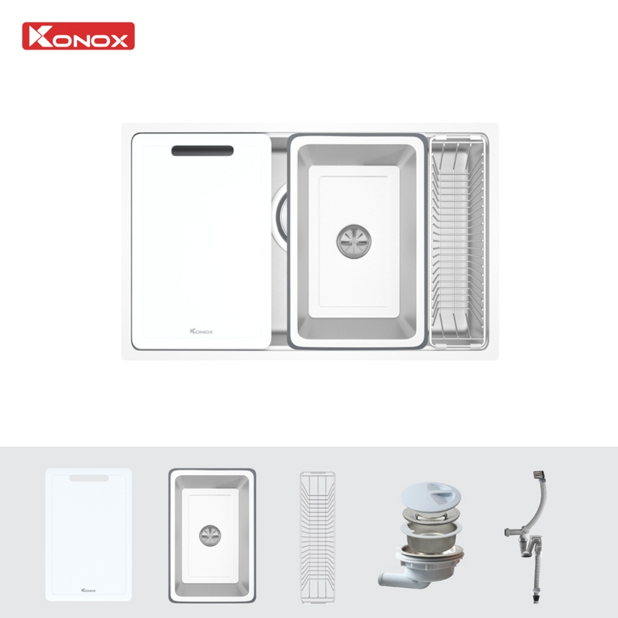 Với model Tari 7648SM, Konox ra mắt công nghệ xử lý bề mặt trơn mịn sở hữu độ bền, khả năng chống ăn mòn lý tưởng, an toàn với sức khỏe và 100% có thể tái chế, giữ vững độ bền và thẩm mỹ theo thời gian. Tari 7648SM với thiết kế vuông góc tinh tế sắc bén tạo điểm nhấn cho không gian bếp.