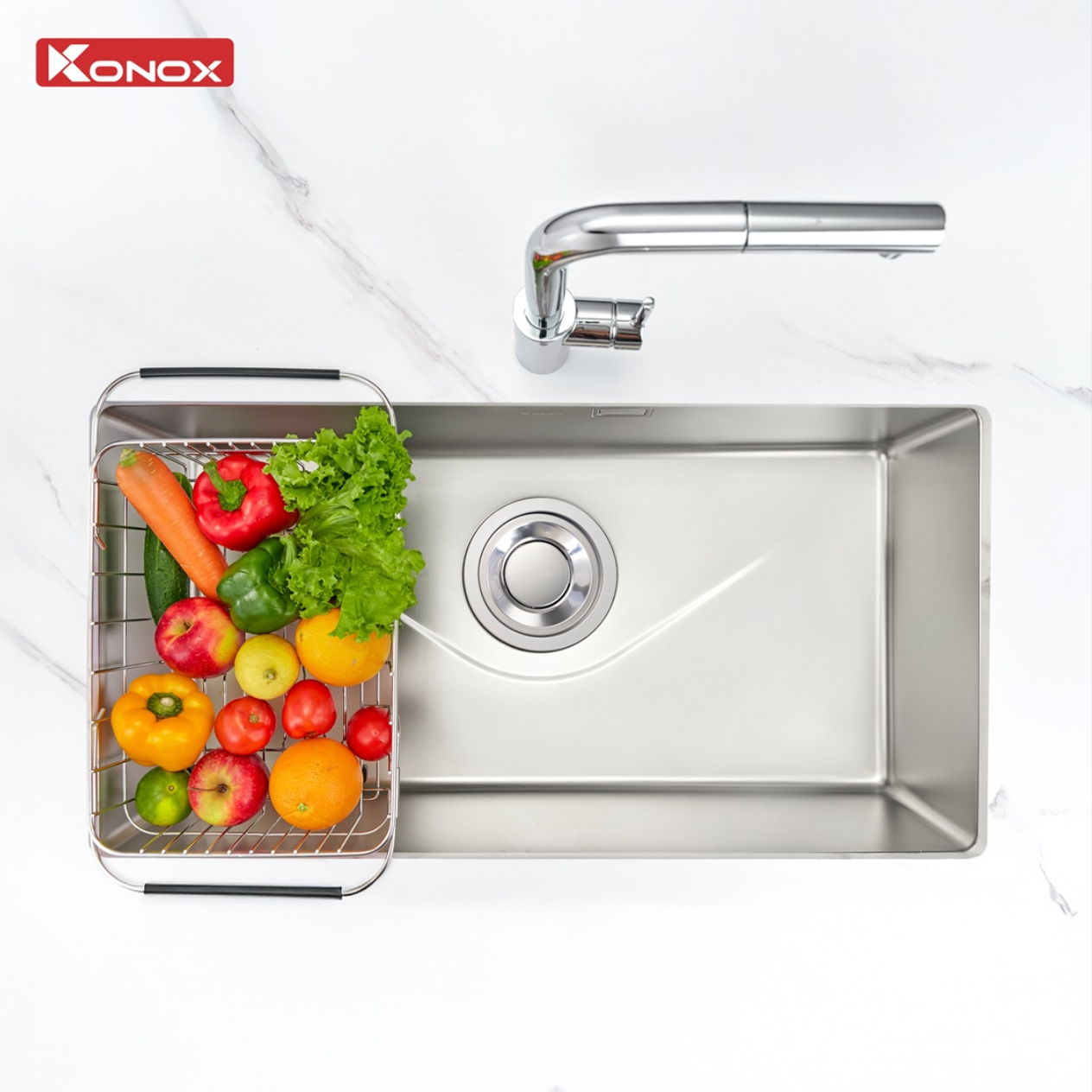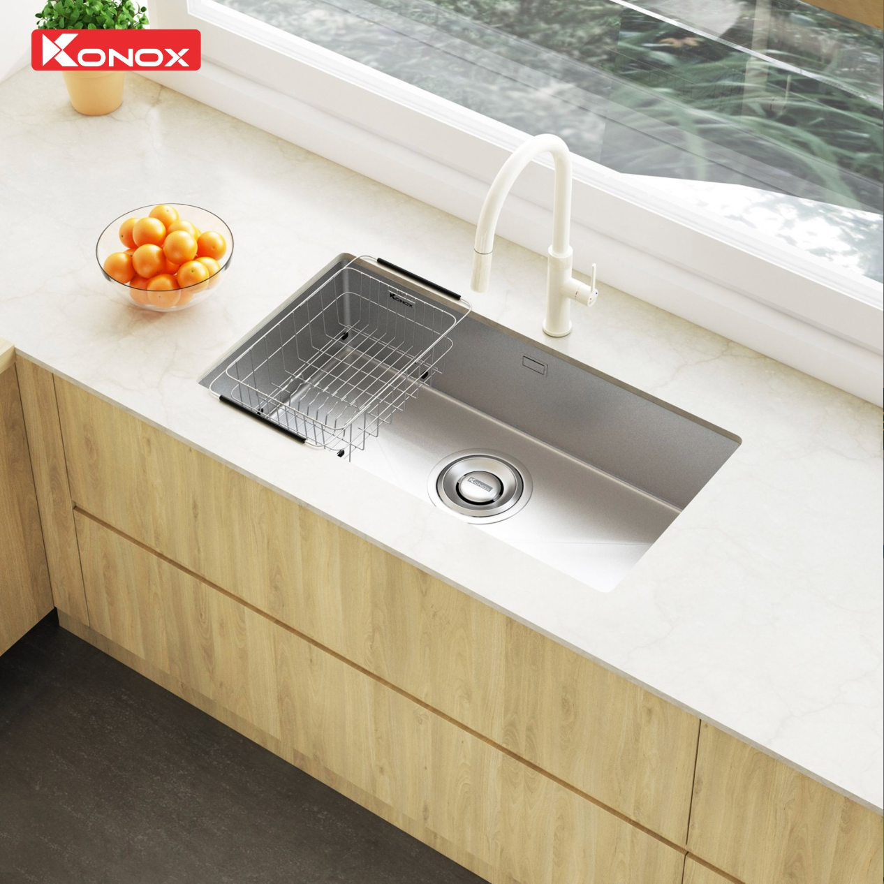 Với model Tari 870SM, Konox ra mắt công nghệ xử lý bề mặt trơn mịn sở hữu độ bền, khả năng chống ăn mòn lý tưởng, an toàn với sức khỏe và 100% có thể tái chế, giữ vững độ bền và thẩm mỹ theo thời gian. Tari 870M với thiết kế vuông góc tinh tế sắc bén tạo điểm nhấn cho không gian bếp.