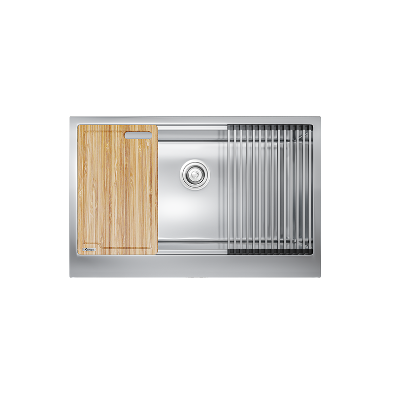 Workstation – Apron Sinks (hay còn gọi Farmhouse sinks) – dòng sản phẩm được Konox lấy cảm hứng, phát triển từ căn bếp nông trại nơi miền quê yên bình của Châu Âu – gian bếp là trái tim của ngôi nhà phong cách đồng quê.