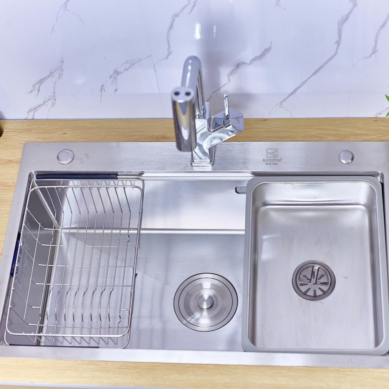 ♦ Sản phẩm chậu rửa bát hay còn gọi là bồn rửa chén 1 hố thương hiệu KEEPER được thiết kế với sự tinh tế và hiện đại, phù hợp với mọi phong cách nội thất và không gian bếp. Chất liệu cao cấp và độ hoàn thiện tỉ mỉ, đảm bảo tính thẩm mỹ và độ bền bỉ, đồng thời giúp tiết kiệm thời gian và công sức trong quá trình nội trợ hàng ngày. Không chỉ tập trung vào chất lượng sản phẩm, KEEPER còn đặt sự hài lòng của khách hàng lên hàng đầu. Đội ngũ nhân viên chuyên nghiệp và tận tâm luôn sẵn sàng hỗ trợ khách hàng trong quá trình chọn lựa sản phẩm và cung cấp dịch vụ hậu mãi tốt nhất.