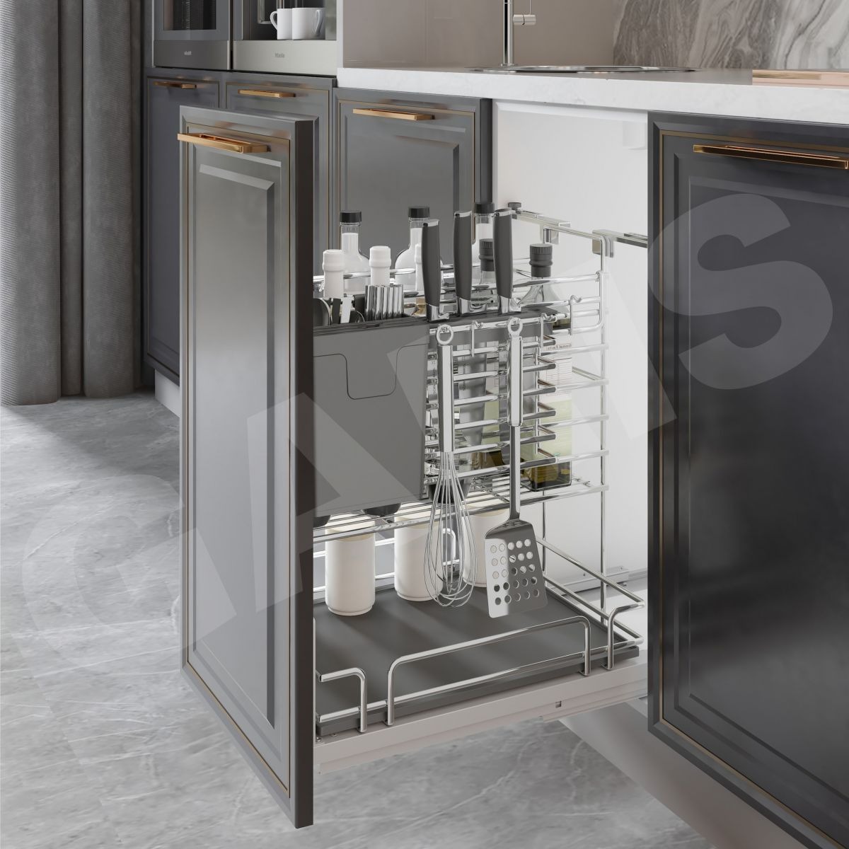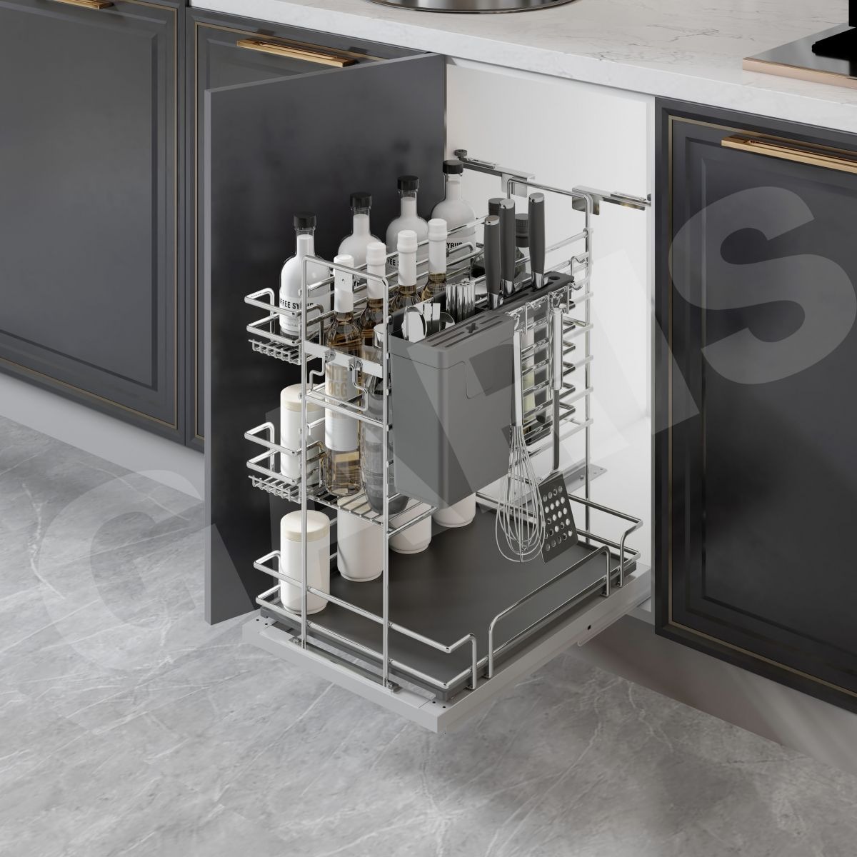 Gợi ý kết hợp phụ kiện khi thiết kế căn bếp : Căn bếp sẽ đẹp hơn khi kết hợp giá dao thớt, gia vị, chai lọ GMV2 với các sản phẩm khác trong MV Series.