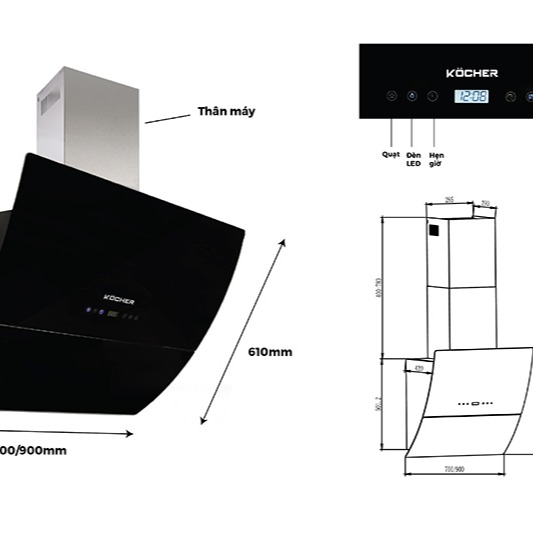 Máy hút mùi K-2080V sở hữu thiết kế vát kính tự động mở, mang đến vẻ sang trọng và hiện đại cho không gian bếp. Với điều khiển cảm ứng thông minh, motor êm ái, cùng than hoạt tính khử mùi hiệu quả, sản phẩm giúp loại bỏ khói, dầu mỡ và mùi thức ăn nhanh chóng – giữ bếp luôn sạch thoáng và dễ chịu mỗi ngày.