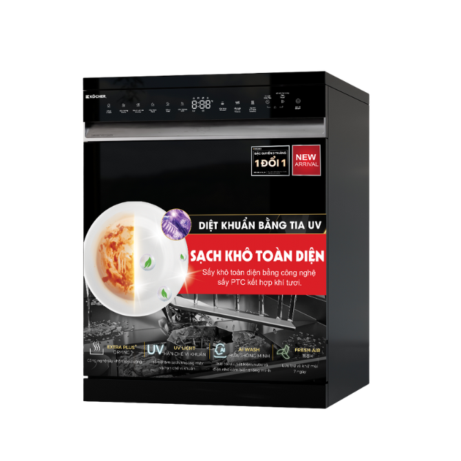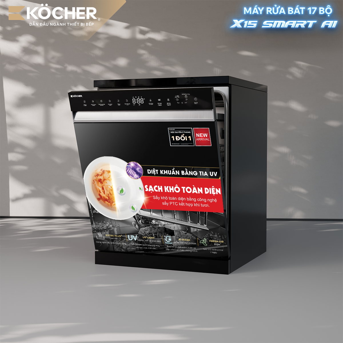 Köcher X15 Smart AI là mẫu máy rửa bát cao cấp, được trang bị AI Wash – công nghệ rửa thông minh bằng cảm biến, giúp tự động tối ưu lượng nước, nhiệt độ và thời gian rửa theo mức độ bẩn thực tế.