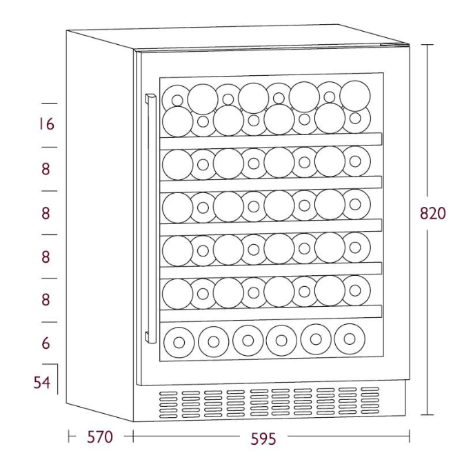 Với thiết kế dung tích 135L, sức chứa 54 chai rượu vang chắc chắn sẽ là sự lựa chọn hoàn hảo dành cho bạn. Bạn có thể lưu trữ cùng lúc nhiều loại rượu vang đỏ, rượu vang trắng.