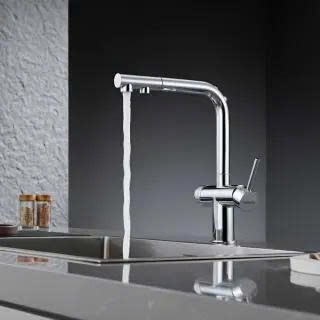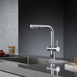 Vòi rửa bát dây rút 3 đường nước MIRA NX333 là mẫu vòi cho phép lắp cùng lúc đường nước sinh hoạt và đường nước từ máy lọc RO trong một thiết kế gọn gàng. Vòi có 2 đầu ra riêng biệt, gồm 1 đầu nước lọc và 1 đầu nước sinh hoạt, sử dụng 1 tay gạt cho nước máy và 1 tay núm vặn cho nước lọc, đảm bảo tách biệt nguồn nước, an toàn và tiện lợi khi sử dụng. Thân vòi làm từ đồng cao cấp, phủ chrome sáng bóng, chiều cao 330mmmm, vừa bền bỉ vừa mang lại không gian thao tác thoải mái, đặc biệt phù hợp cho các căn bếp hiện đại sử dụng máy lọc nước RO.