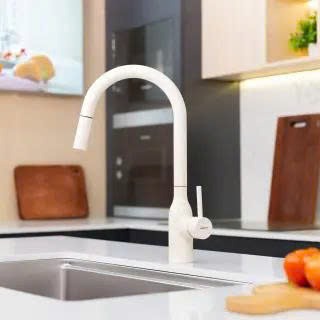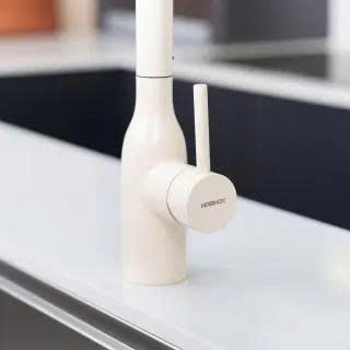 Trong bộ sưu tập AQUA - dòng sản phẩm hướng đến sự tinh tế và hài hòa trong không gian bếp. Vòi rửa bát dây rút NOBINOX AQUA NX661B gây ấn tượng với sắc Milky White thanh lịch, nhẹ nhàng nhưng vẫn đủ nổi bật để tạo điểm nhấn sang trọng cho khu vực chậu rửa.