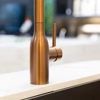 Trong dòng sản phẩm AQUA - nơi đề cao sự cân bằng giữa thẩm mỹ và công năng. Vòi rửa bát dây rút NOBINOX AQUA NX662T nổi bật với sắc Rose Gold ấm áp, tạo điểm nhấn khác biệt cho không gian bếp. Gam màu này không chỉ mang hơi hướng sang trọng mà còn giúp khu vực chậu rửa trở nên tinh tế và có chiều sâu hơn trong tổng thể nội thất.