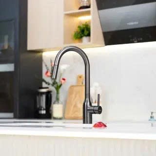Được trang bị đầu vòi kéo dây linh hoạt, sản phẩm cho phép mở rộng phạm vi thao tác một cách đáng kể trong khu vực bếp. Chỉ với một thao tác kéo nhẹ, bạn có thể đưa đầu vòi ra khỏi thân chính để tiếp cận nhiều vị trí khác nhau, không còn bị giới hạn trong lòng chậu rửa.