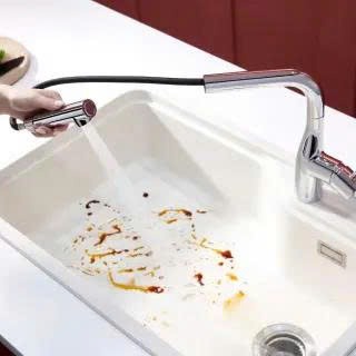 Vòi bếp dây rút nóng lạnh thiết kế linh hoạt, đầu vòi có thể kéo dài tới 80cm giúp mở rộng phạm vi sử dụng một cách tối ưu. Tính năng này đặc biệt tiện lợi khi rửa thực phẩm, vệ sinh mọi ngóc ngách của chậu rửa hay chuyển hướng dòng nước linh hoạt. Đây là giải pháp lý tưởng cho những căn bếp hiện đại, đề cao sự tiện nghi và hiệu quả.